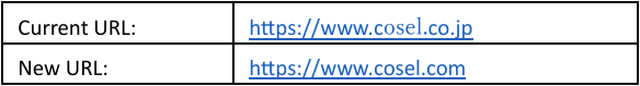 COSEL stellt die auf Produktlabeln und Verpackungen angegebene Website-Domain um. Die bisherige URL https://www.cosel.co.jp wird auf https://www.cosel.com geändert. Die bisherige Adresse leitet weiterhin automatisch auf die neue Website weiter.